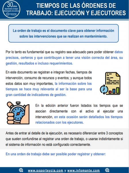 La orden de trabajo es el documento clave para obtener información sobre las intervenciones que se realizan en mantenimiento, por lo tanto es fundamental que su registro sea adecuado y así obtener datos precisos.